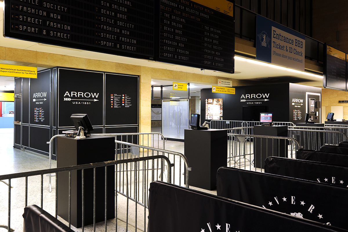 From the smallest fair stand to expansive brand presentations, from the display of a former check-in-booth to the conversion of existing rooms at the former airport into English parlours from the 19th century – kubix creates eye catching displays and environments at the Berlin fashion fair.