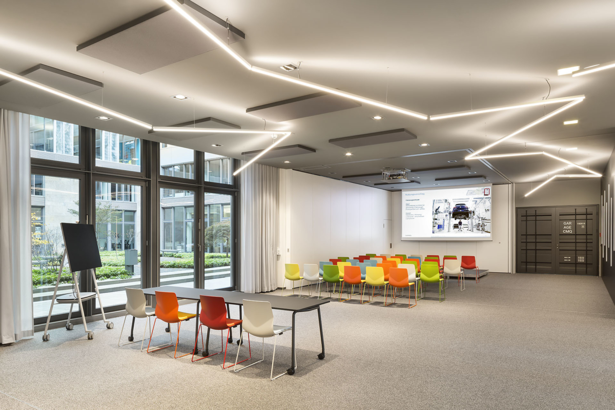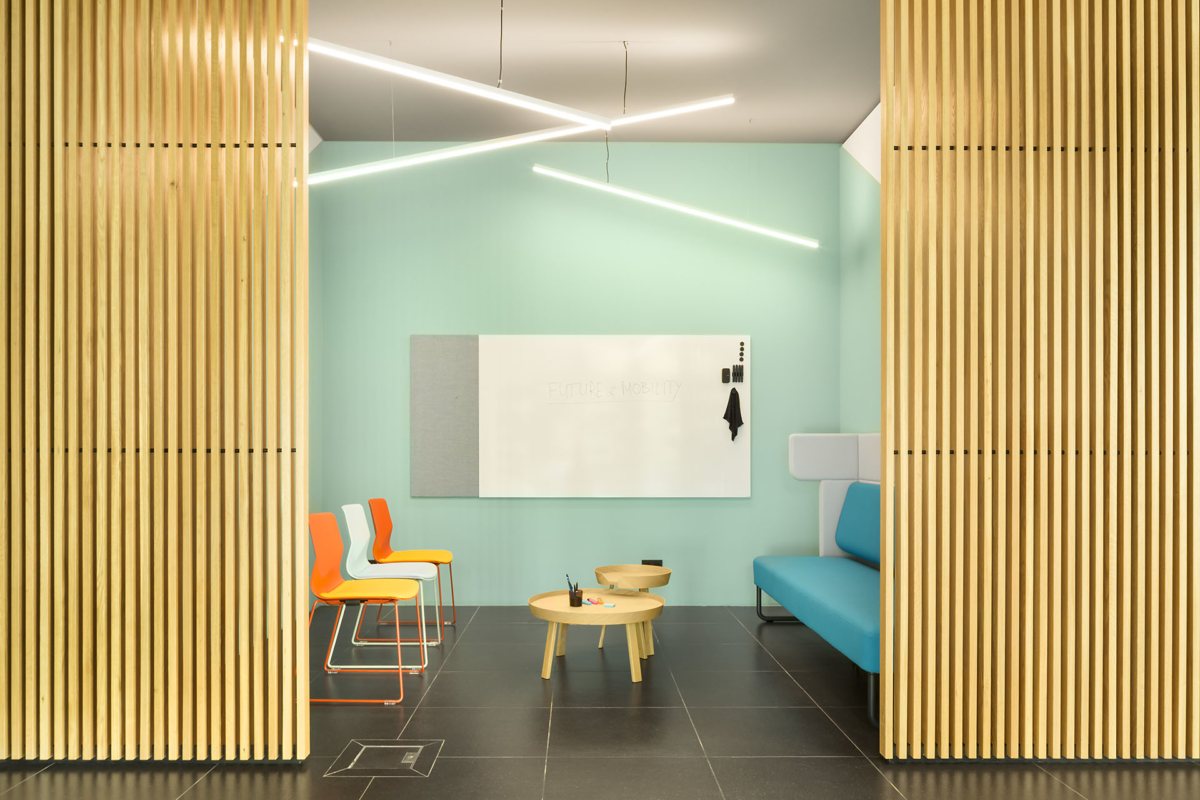 Visitors can experience professional research and contribute to the newest developments through the use of ‘user experience testing’. Different areas within the lab were created to encourage employees to break out of their everyday work environment and learned patterns. The spaces can be used as meeting places, to strengthen interdisciplinary work and to enable the utilization of creative working methods. The latest product developments can be tried out in the “secret” workshop. Thanks to efficient cooperation with Carmeq, the design and planning was quickly adapted to their requirements. The entire project, from design to execution, was realized in just eight months.