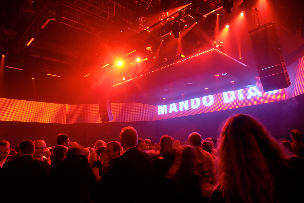 For the launch of the third generation of the Volkswagen Scirocco, the audience was surrounded by an oversized slot-car racing track. The dizzying effect was further enhanced by parallel LED displays. kubix orchestrated the event, which set new standards in the industry.