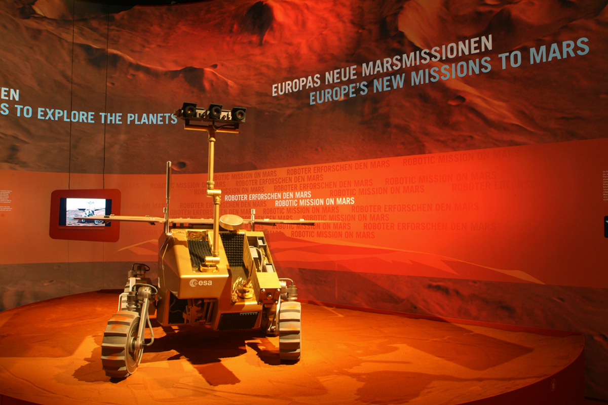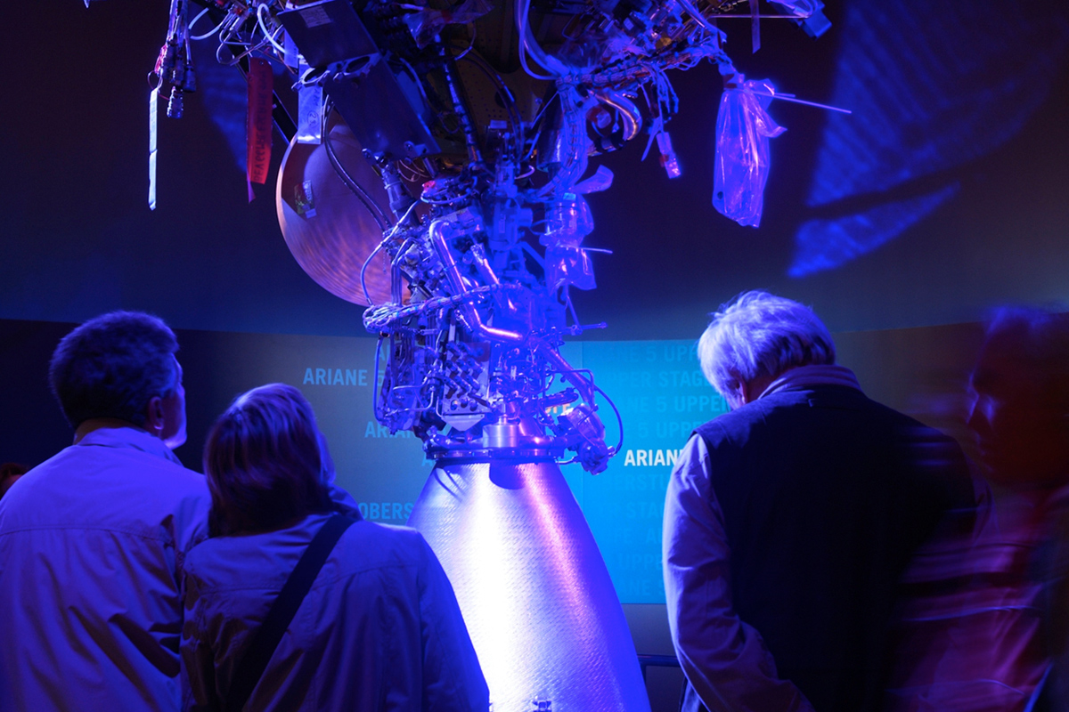 The regular highlight and top visitor attraction at the international air and space exhibition is the space hall. It is a project which displays the work of a number of diverse interest groups, and within its 1,200 square metres it allows an overview of current space projects.