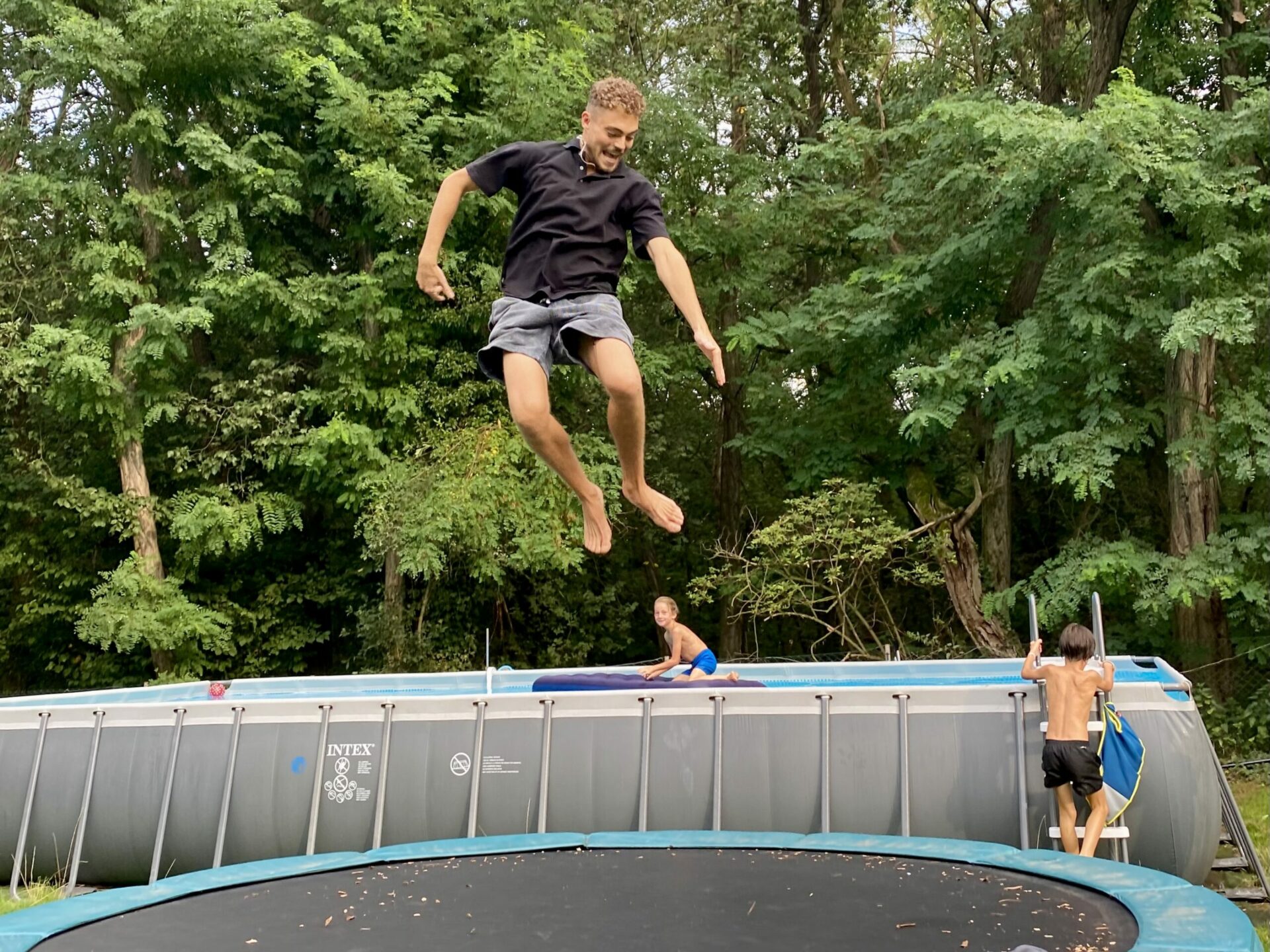 Ponyreiten und Trampolinspringen
