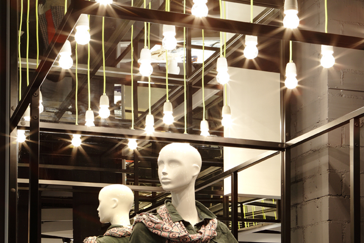 Karstadt zielt mit dem K-Town Concept Store auf eine junge Käuferschaft. Im Entwurf von Jazzunique spiegelt sich dies insbesondere durch eine besonders offene und lockere Installation von Dekorationselementen wider, die dazu noch Medientechnik und Lichtinstallationen beinhalten.